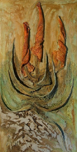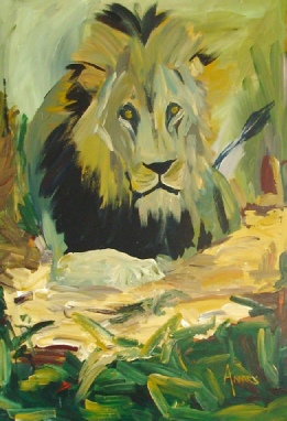 The exhibit consisted of a seascape and a portrait of a lion, done in acrylics, and an aloe which was created with cement derivatives.